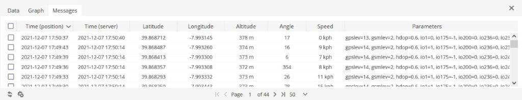 - Events tab - history of events can be viewed (overspeending, entering; or leaving zones and etc.).